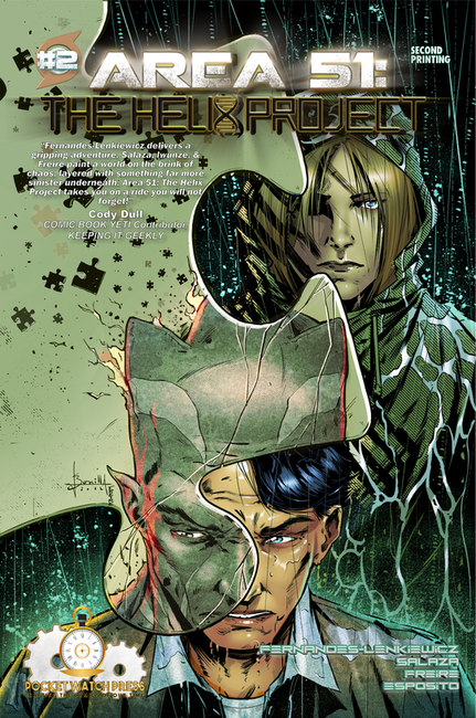 "Fernandes-Lenkiewicz delivers a gripping adventure. Iwunze & Freire paint a world on the brink of chaos layered with something far more sinister underneath. Area 51: The Helix Project takes you on a ride you will not forget!” —Cody Dull (Keeping It Geekly, Comic Book Yeti Contributor)