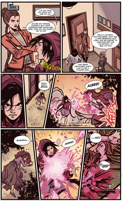 SC: My favorite is probably Bash and Rosette’s first kiss at the end of Issue #4. Eze’s work there is just so beautiful and romantic. And I don’t want to give away spoilers, but there’s a page roughly in the middle of Issue #5 that’s pretty gory in the best way and I love it!